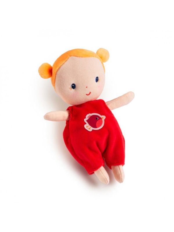 Agathe, une petite poupée nomade vêtue d'un petit pyjama en velours rouge, tout doux souple elle est facile à attraper pour les petites mains, elle se déshabille complètement comme un vrai bébé. Elle à une très jolie couverture bien chaude. Votre enfant prendra plaisir à imiter sa maman et à emmener son bébé partout grâce à son petit couffin.