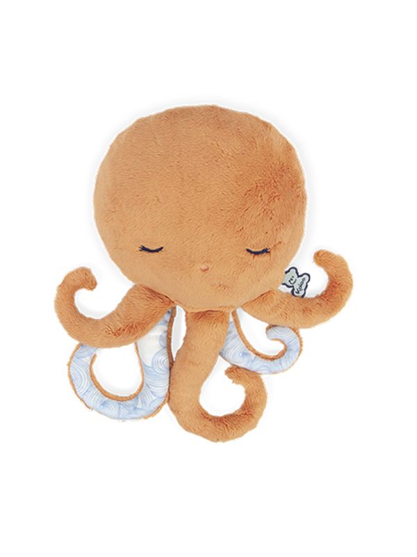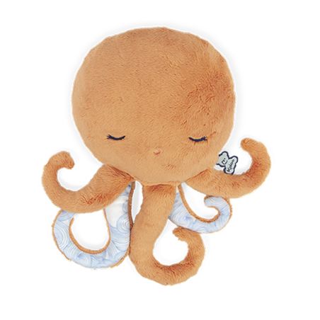 Ce petit poulpe très doux en fourrure orange a un ventre habillé d'un tissu imprimé "Danse des vagues" agrémenté de broderies de poissons qui rappellent le calme des profondeurs marines. Sans poche, la peluche pieuvre enveloppera bébé de réconfort avec ses doux tentacules pour devenir son meilleur compagnon à câliner.
