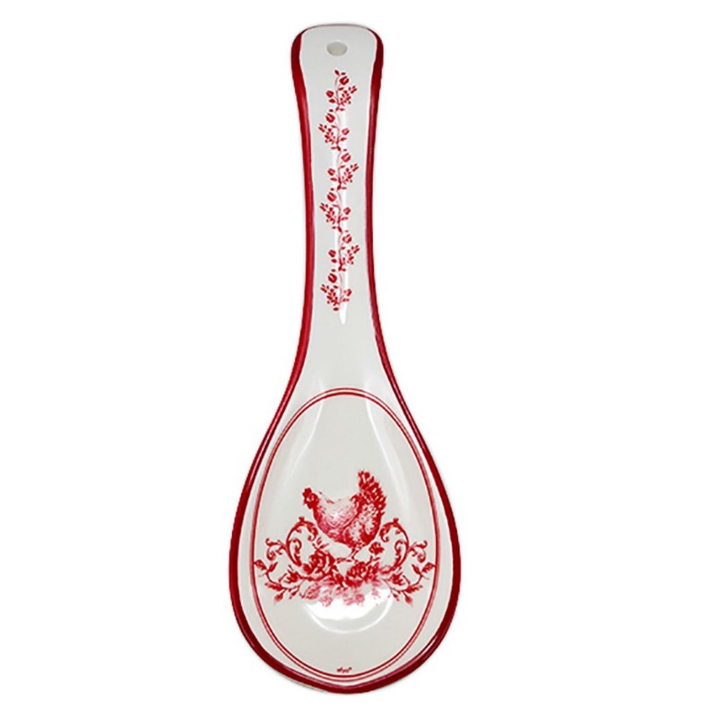 Repose cuillère en faïence avec joli dessin. Un fin liserai assortie à la couleur prédominante du thème est visible sur toute le contour de la cuillère.